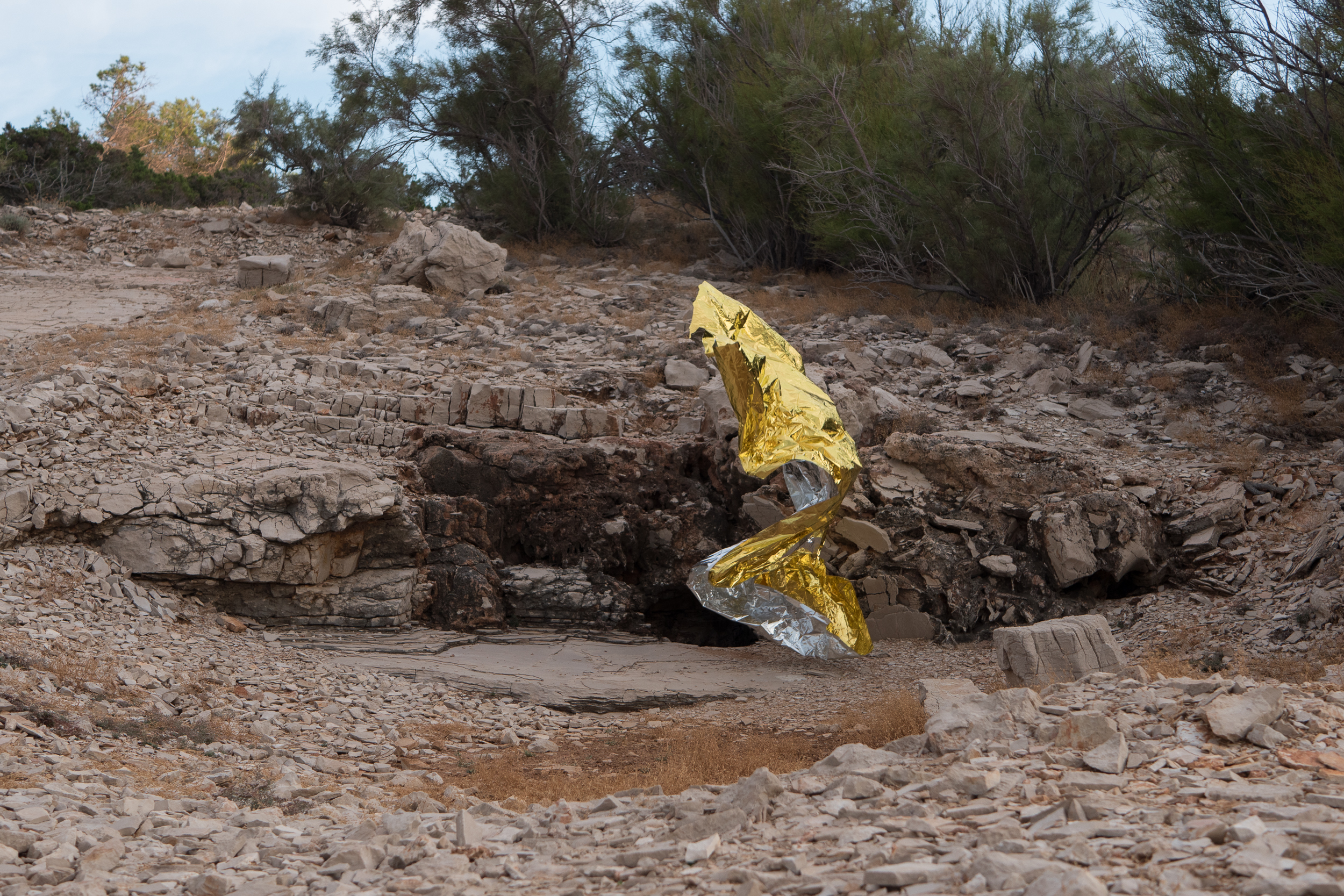 The protective blanket in this photo series is an evidence of migrations passage over Balkans from Middle East and as they are crossing the Mediterranean to reach a safe land in search of a better life.